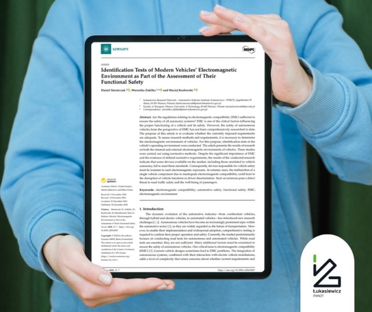 Daniel Sterniczuk, Weronika Zaklika i Maciej Kozłowski przedstawiają wyniki swoich badań w artykule: „𝘐𝘥𝘦𝘯𝘵𝘪𝘧𝘪𝘤𝘢𝘵𝘪𝘰𝘯 𝘛𝘦𝘴𝘵𝘴 𝘰𝘧 𝘔𝘰𝘥𝘦𝘳𝘯 𝘝𝘦𝘩𝘪𝘤𝘭𝘦𝘴’ 𝘌𝘭𝘦𝘤𝘵𝘳𝘰𝘮𝘢𝘨𝘯𝘦𝘵𝘪𝘤 𝘌𝘯𝘷𝘪𝘳𝘰𝘯𝘮𝘦𝘯𝘵 𝘢𝘴 𝘗𝘢𝘳𝘵 𝘰𝘧 𝘵𝘩𝘦 𝘈𝘴𝘴𝘦𝘴𝘴𝘮𝘦𝘯𝘵 𝘰𝘧 𝘛𝘩𝘦𝘪𝘳 𝘍𝘶𝘯𝘤𝘵𝘪𝘰𝘯𝘢𝘭 𝘚𝘢𝘧𝘦𝘵𝘺”. W artykule znajdziecie: analizę wyników badań identyfikacyjnych środowiska elektromagnetycznego współczesnych pojazdów, wykazanie korzyści wypływających ze zmiany podejścia do badań EMC, przekładając…