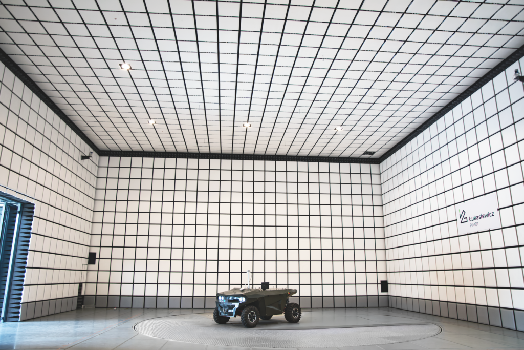 W komorze EMC możemy przeprowadzać kompleksowe testy dla obiektów o długości do 12 m i masie do 50 t. Wykonujemy zarówno badania zjawisk przewodzonych, jak i promieniowanych.